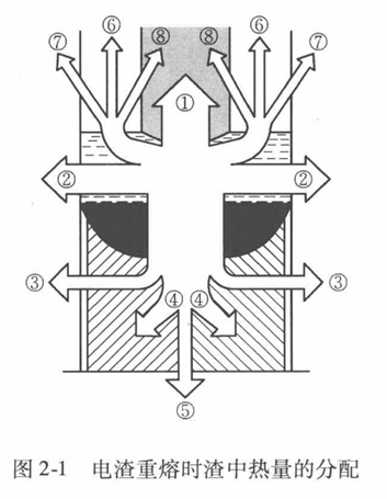 关于电渣重熔热量的一般分配如图2-1 所示。